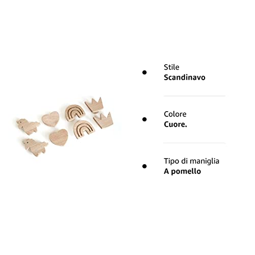 PLT - Maniglie per mobili per bambini, in legno di quercia non trattato, pomello, universale, per cassettiera, armadio, cassetto, porta, cameretta dei bambini, 2, motivo cuore