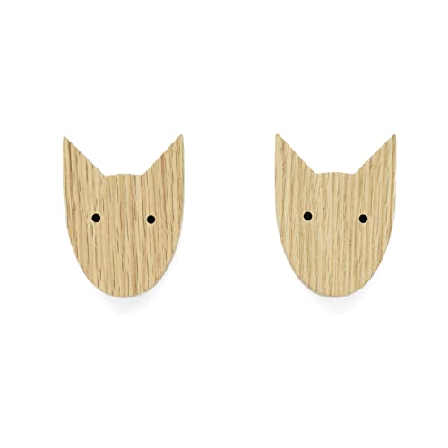2 maniglie per mobili per bambini, in legno di quercia non trattato, motivo cane, pomelli per comò, armadio, cassetto, porta, cameretta dei bambini (2, cane)