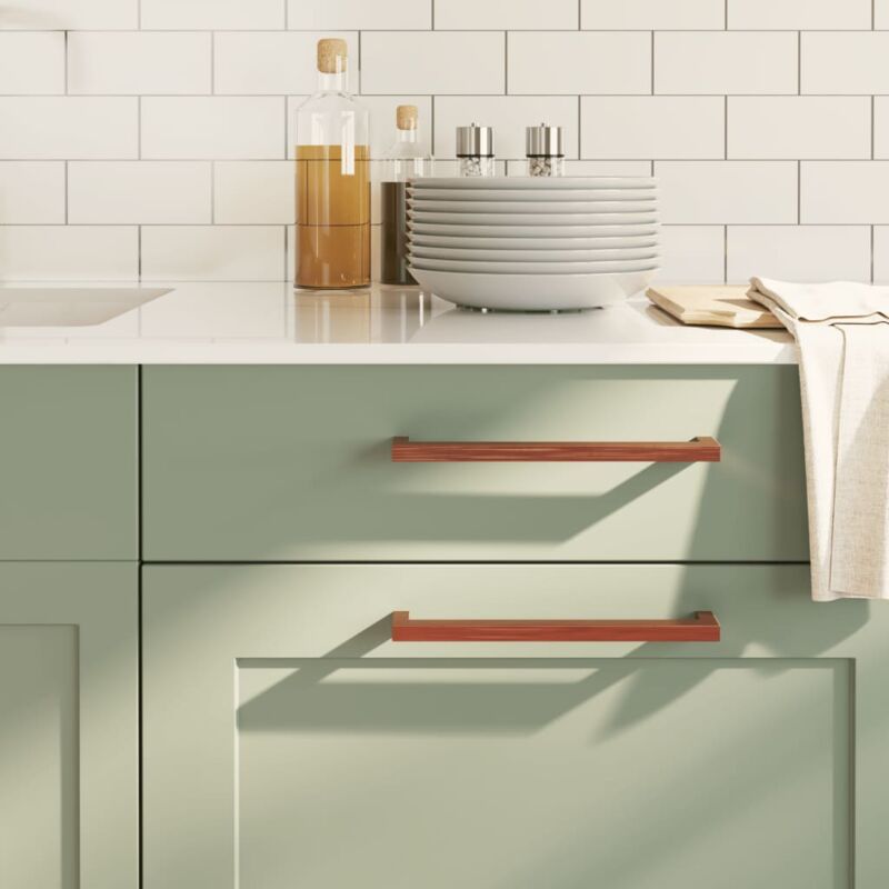 Queste maniglie per i mobili, dal design semplice e moderno, conferiranno un tocco di eleganza agli armadietti della vostra casa. Materiale resistente: La maniglia per l'anta è realizzata in acciaio inossidabile durevole, resistente alla corrosione e alla ruggine. Ampie applicazioni: La maniglia per i cassetti è adatta a vari mobili, cassetti, credenze, guardaroba, armadietti, casse di legno, e così via. Vite tagliabile: La vite in bambù è tagliabile per adattarsi a diversi spessori di pannelli in base alle vostre esigenze. Colore: Bronzo Materiale: Acciaio inossidabile Dimensioni: 236 x 12 x 35 mm (L x L x A) Spaziatura dei fori centrali: 224 mm Spessore del pannello adatto: 12-36 mm Lunghezza della vite: 45 mm Viti tagliabili in bambù Design del tubo quadrato La consegna include: 10 Maniglie per mobili 20 Viti