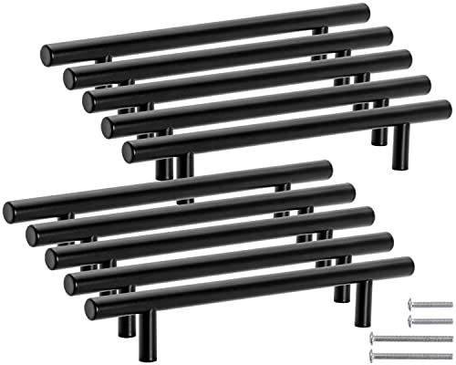 10 maniglie per mobili nero opaco, 160 mm, in vero acciaio inox, Ø 10 mm, maniglie per armadio, bagno, mobili, soggiorno, mobili, armadi, credenze, cassetti, con viti