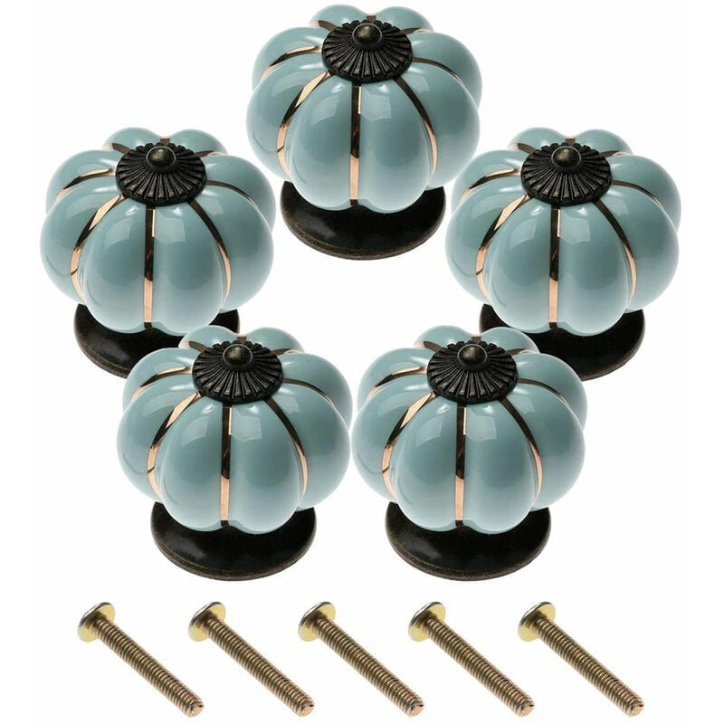 Contenuto - Un set di 5 pomelli per mobili blu cielo, diametro 40 mm, altezza 40 mm, con viti. 【Materiale】 Il nostro manico è realizzato in ceramica di alta qualità e basi in lega di zinco. 【Design】 Questi pomelli per mobili a forma di zucca hanno un aspetto classico ed elegante, bello e pratico. 【Vintge】La linea dorata lo fa sembrare retrò ed è anche una scelta ideale per mobili decorativi. 【Utilizzo】 Adatto per armadi, cassettiere, comodini, cassetti e altri mobili .