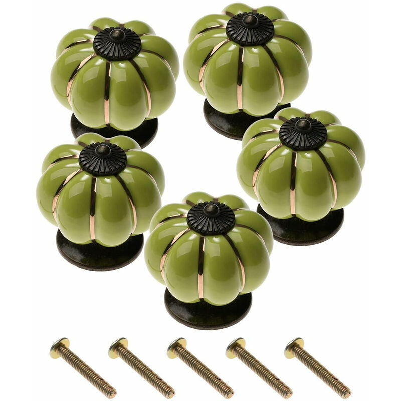 Contenuto - Un set di 5 pomelli per mobili verdi, 40 mm di diametro, 40 mm di altezza, con viti. 【Materiale】 Il nostro manico è realizzato in ceramiche di alta qualità e basi in lega di zinco. 【Design】 Questi pomelli per mobili a forma di zucca hanno un aspetto classico ed elegante, belli e pratici. 【Vintge】La linea dorata lo fa sembrare retrò ed è anche una scelta ideale per i mobili decorativi. 【Utilizzo】Adatto per armadi, cassettiere, comodini, cassetti e altri mobili .