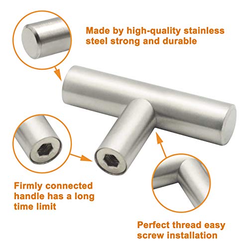 Maniglie monoforo a forma di T Morobor 10PCS, pomelli in acciaio inossidabile, maniglie cilindriche monoforo, maniglie cilindriche per mobili, maniglie monoforo per cassetti e armadi