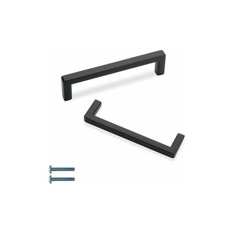 Maniglia nera per armadio in lega di zinco di alta qualità, elegante e moderna. Interasse 128 mm: lunghezza totale 140 mm, altezza 35 mm, larghezza 12 mm. Non è necessaria alcuna abilità per completare l'installazione e funzionare senza problemi. Viene fornito con 10 maniglie e viti per mobili, perfetto per porte, armadi, cassetti, cassettiere.