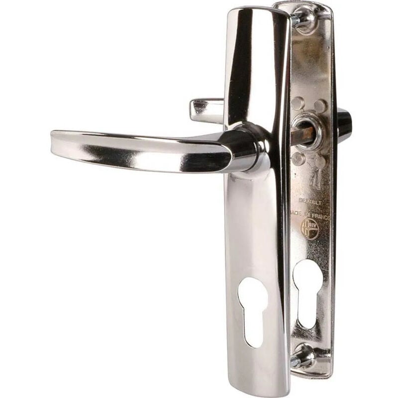 Due maniglie per porte con finitura cromata a specchio, chiave I, interasse 165 mm Vachette 7157 L'essenziale set di porte cromate. Una garanzia di solidità (maniglia e piastra in un unico pezzo), estetica e soprattutto facilità di installazione. Per porte standard di 40 mm di spessore. Modello: SMALL RIV-ANGERS PLATE. Piastra fusa con pilastri filettati integrati e viti invisibili all'esterno. Solidità: infallibile. Durevolezza: progettato per un uso pesante. Complementarità: tra i diversi modelli di specchi cromati della gamma. Installazione con risparmio di tempo: grazie all'avvitamento semplificato nei montanti filettati integrati nella piastra. Finitura: Cromo a specchio. Con asta quadrata 7 x 90 mm e vite M4 x 40 mm. La maniglia del portachiavi posso ospitare una chiave. È ideale per l'uso su una porta d'ingresso o di servizio.