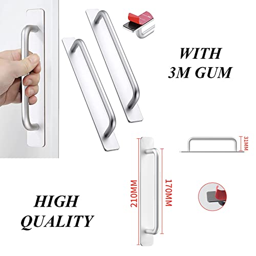 Maniglie Per Porte Mobili Autoadesive, 2 Pezzi Maniglia Porta Esterna, Maniglie Per Mobili, Per Porte E Finestre, Camera Da Letto, Porta Scorrevole (210 Mm, Argento)