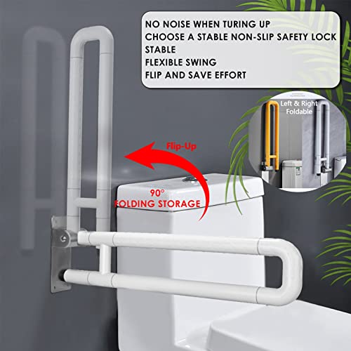 Maniglione ribaltabile: le sponde di sicurezza del WC sono progettate secondo la meccanica del corpo umano, con una forte capacità portante, più solide e sicure. 90° verticalmente verso l'alto e appoggiato al muro quando non è in uso, il che ti aiuta a risparmiare spazio prezioso nel bagno, ottimo per piccoli bagni e servizi igienici, è il vero aiuto per la toilette e l'assistenza agli anziani.