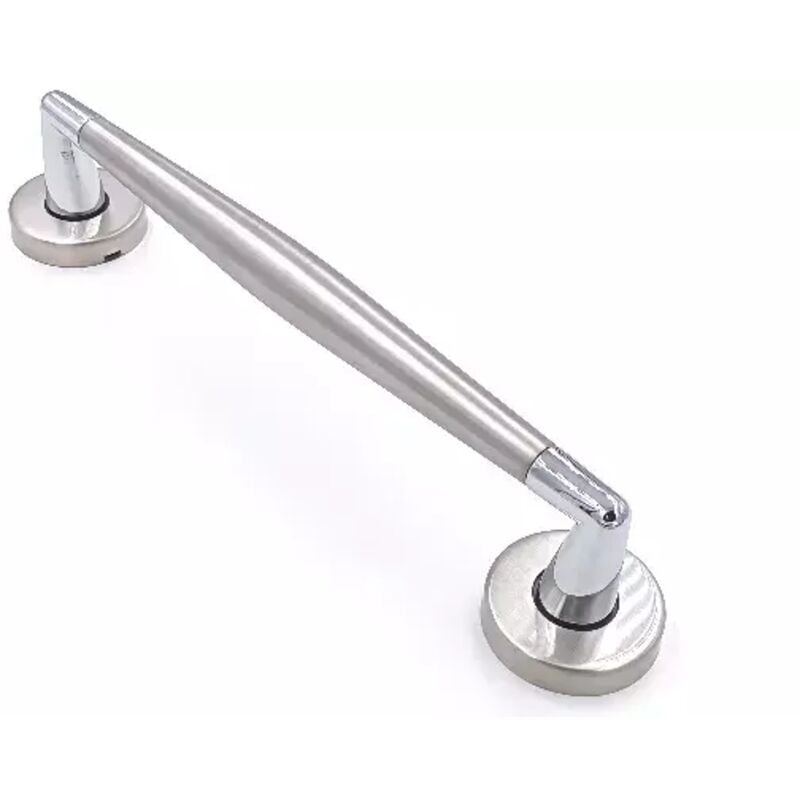 Maniglione Diritto con rosette GPB Ginevra in Ottone finitura Acciaio Inox . La confezione comprende un maniglione e la viteria per il fissaggio singolo . Dimensioni: Interasse fori 252 mm Lunghezza totale 270 mm Diametro rosette 52 mm Ingombro 59 mm Colore: Acciaio Inox