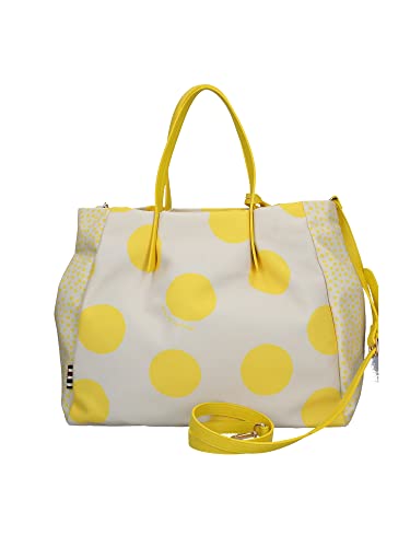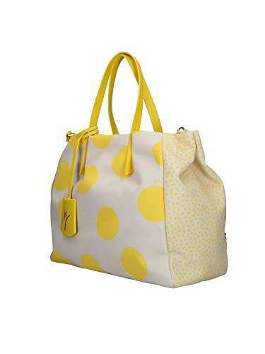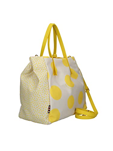 MANILA GRACE Borsa Tracolla Jasmine Big in Tela Fantasia Pois Gialli