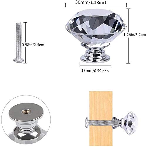 Confezione e dimensioni: la manopola del cassetto in cristallo contiene 16 maniglie in cristallo e 16 viti abbinate. Impugnatura: altezza 32 mm, larghezza 30 mm, movimento centrale diametro 16 mm, vite standard: 4 mm * 25 mm, peso: circa 22 grammi.