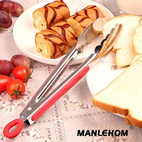 MANLEHOM Pinze Cucina, Utensili Acciaio Inox per Alimentari Grigliare Carne Barbecue e Servire 23cm e 30cm Nero