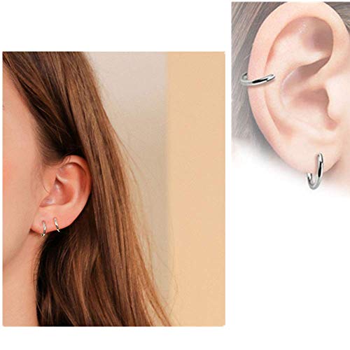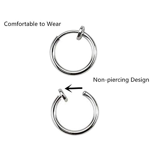 Mannli 6 Paia Orecchini a Cerchio Falso Non Forato Anello Naso Non-bucato Molla Cerchio Orecchini Clip del Orecchio Labbro,13-50 mm