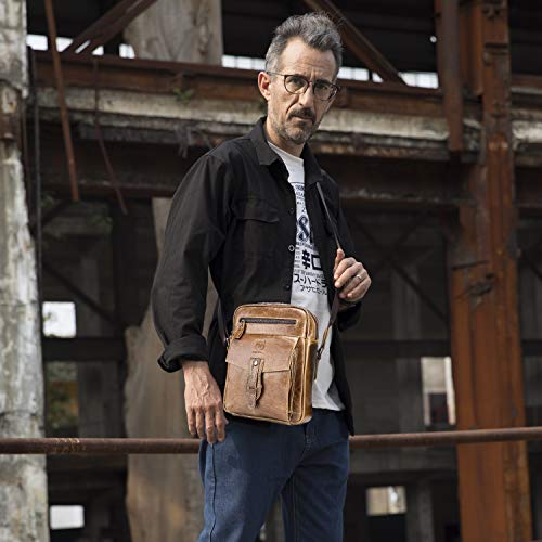 MANNUOSI Borsa da Uomo a Tracolla in Vera Pelle Vintage Borsa a Spalla Piccola Crossbody Bag Casual Marrone scuro