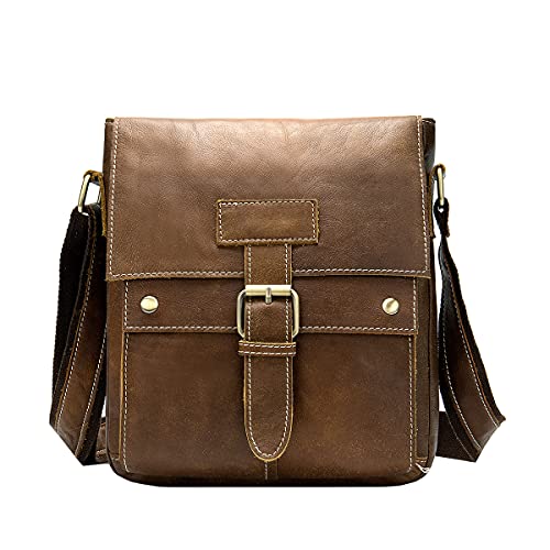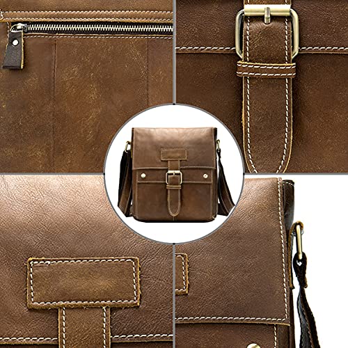 MANNUOSI Uomo Borse A Spalla Borsa a tracolla in pelle Borsa a tracolla tipo retrò con copertina Borsa casual Marrone