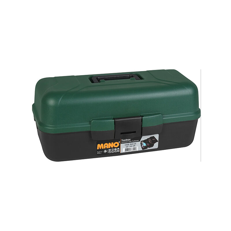 Comoda e robusta cassetta degli attrezzi: all'interno ci sono 3 ripiani che si aprono e chiudono a fisarmonica. Il vassoio si gira di lato in modo che gli oggetti sul fondo siano facilmente accessibili. Chiusura in plastica e maniglia per il trasporto che si ripiega nel coperchio. Dimensioni: 410 x 202 x 179 mm.