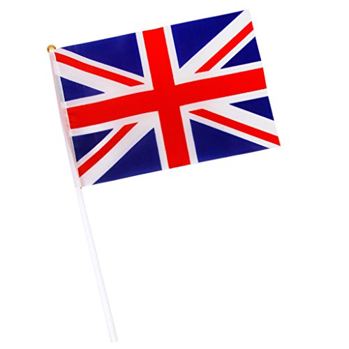 Mano ondeggiante bandiera Union Jack, pali in plastica, 21 x 14 cm, confezione da 12