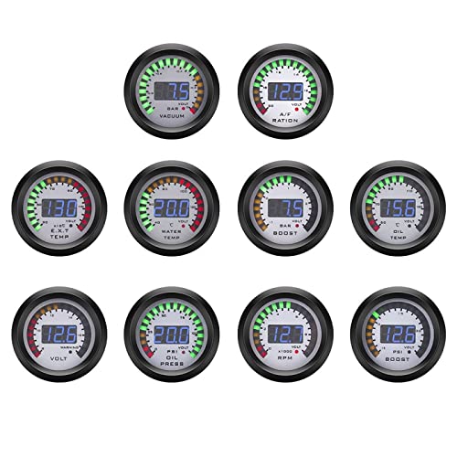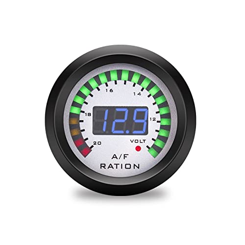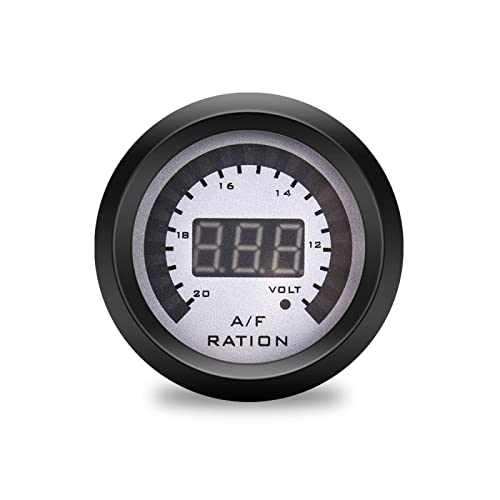 Manometri Auto 52mm,Strumento Modificato Per Auto Display Digitale A Luce Blu Due In Uno Voltaggio Quadrante Argento 12V Misuratore Di Temperatura Dell'Acqua,Tabella Del Rapporto Carburante Aria