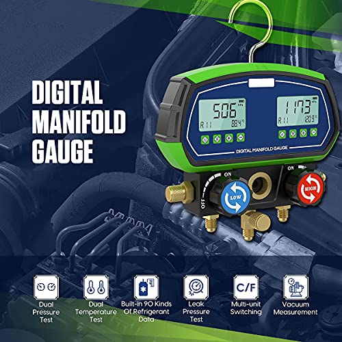 【DATI ACCURATI】 L'unità di elaborazione digitale a 32 bit integrata nel collettore digitale HVAC e l'unità di acquisizione dati ad alta precisione, in modo che il suo volume di dati sia elevato e stabile.Questo pratico refrigerante con uno schermo dual-mode ad alta definizione e non lo è facile da appannare, supporta anche la retroilluminazione LCD, la visualizzazione dei dati è chiara e di facile lettura.