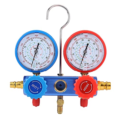 【Facilità d'uso】 Il doppio misuratore grande e chiaro adotta un indicatore di pressione della molla unico, che rende la lettura più accurata. Con questo manometro del collettore, puoi testare, caricare e scaricare in modo semplice e sicuro l'impianto di condizionamento dell'aria