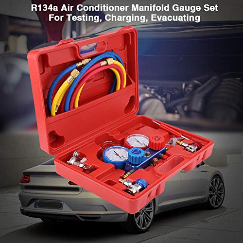Manometro del collettore del condizionatore d'aria, set di manometro del collettore del condizionatore d'aria R134a con strumento per tubo di ricarica da 5 piedi e custodia