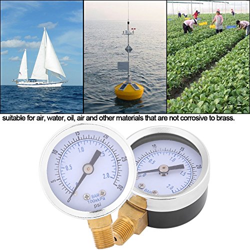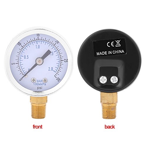 Manometro con filettatura, filettatura BSPT da 1/8 ", quadrante 0-30 psi 0-2 bar Strumento con doppia scala, quadrante mini compressore olio acqua Manometro idraulico Manometro in metallo
