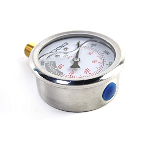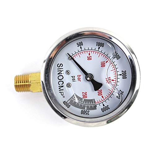 Manometro idraulico - connettore in ottone 1/2", 2 display a quadrante, precisione -1.5%, attacco inferiore 1/4" NPT, garanzia 2 anni, argento