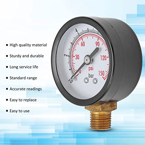 CARATTERISTICHE: La buona tenuta al gas del manometro garantisce una misurazione precisa della pressione. Manometro a doppia scala a lancetta, non necessita di batteria, pronto per l'uso. Il nostro manometro ha una gamma da 0 a 150 psi, che può essere utilizzato in molti luoghi per soddisfare le tue esigenze di lavoro.