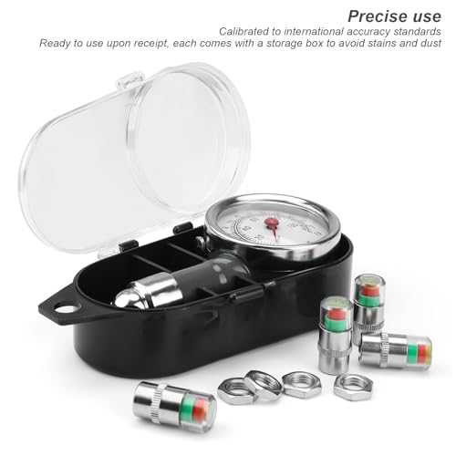 Protezione Antifurto: Tappo di rilevamento della pressione dei pneumatici è inoltre dotato di un dado di fissaggio, che può fissare il tappo di rilevamento della pressione dei pneumatici sul foro dell'aria del pneumatico per impedire ad altri burloni di rilasciare il gas nel pneumatico e garantire la sicurezza del pneumatico.
