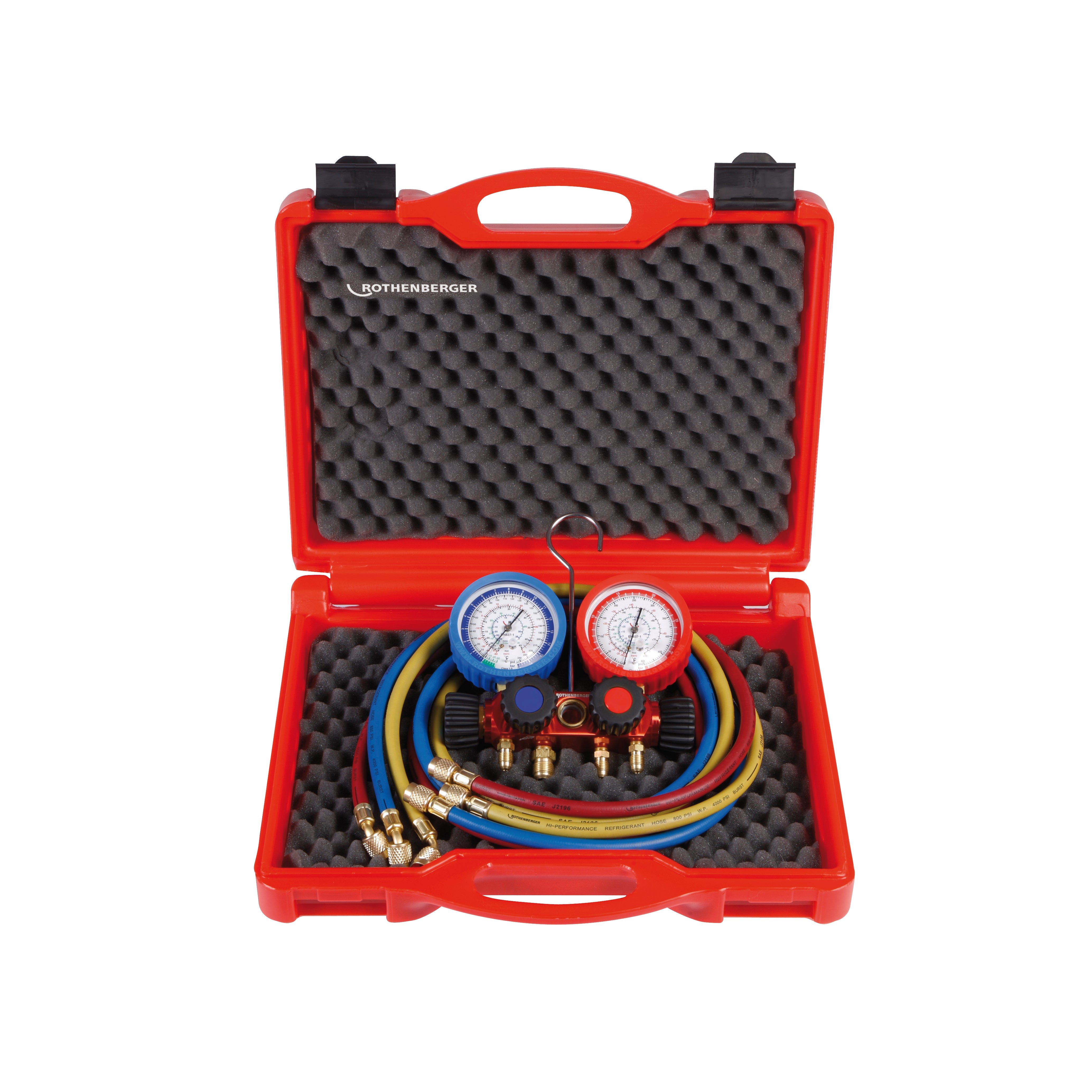 4 vie. Composto da Manometro, tubo flessibile, valvole e attacchi, valigetta