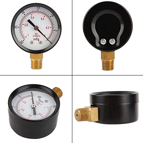 Manometro Per Vuoto, Manometro in Acciaio Inossidabile Doppio Display - 1/4 NPT Montaggio Inferiore MF, Manometro a Secco Multifunzione Per Utilità Economica, Manometro Acqua Olio Gas