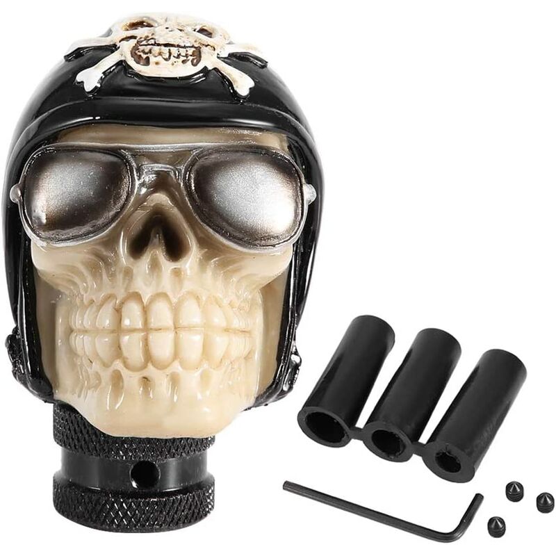 Nuovo di zecca - Pomello del cambio con testa a teschio di alta qualità al 100% nuovo di zecca, rigorosamente testato per garantire la migliore qualità prima della spedizione, sicuro da usare. 【Alta qualità】 Il teschio della manopola del cambio per auto l'ingranaggio è realizzato in resina di alta qualità + materiale metallico, che è ad alta resistenza, robusto, affidabile, resistente alla corrosione, all'usura, ecologico e non tossico, resistente all'invecchiamento e durevole nell'uso. 【Caratteristiche】 La leva del pomello del cambio dell'auto è realizzata in fabbricazione professionale, caratterizzata da alta affidabilità, alta sensibilità, nessun colore sbiadito e dipinto, artigianato squisito, personalità cool, aggiungendo un aspetto lussuoso e alla moda alla tua auto, rendendo la tua auto più attraente. 【Facile da installare】 La leva del cambio dell'interruttore del cranio è dotata di 3 tubi (8 mm, 10 mm, 12 mm). È facile da installare e sostituisce direttamente quello vecchio o