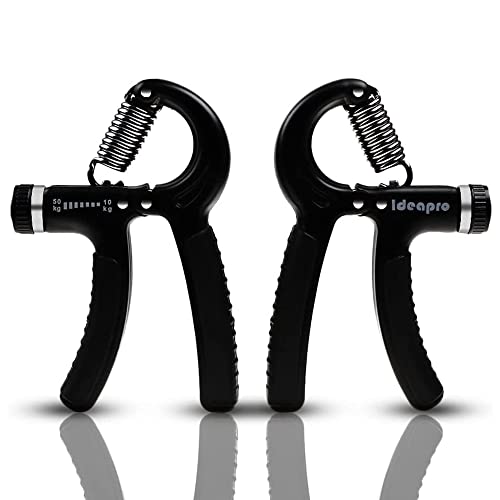 Manopole Mani, IDEAPRO 2 Pack 10-50Kg Hand Grip Regolabile, Pinza Mano con Resistenza, Manico Antiscivolo (Nero)