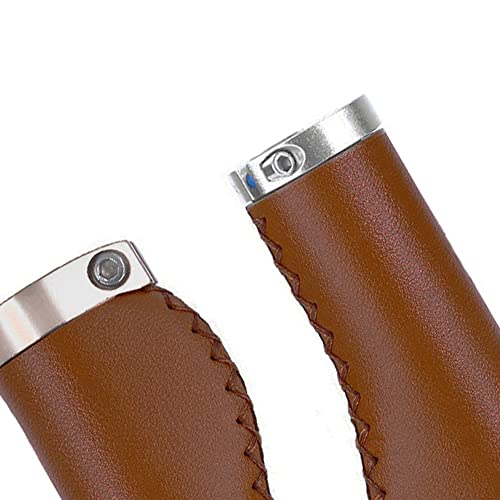 Manopole per maniglia in PVC microfibra ergonomiche cucite a mano casual retrò impugnature antiscivolo doppia leva per manubrio MTB, bici da strada (DarkBrown-135mm-A)