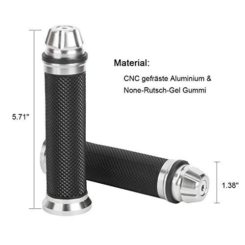 Manopole per manubrio per moto, manubrio standard, in alluminio, CNC, in gomma, per manubrio da 7/8", colore: argento manopole moto