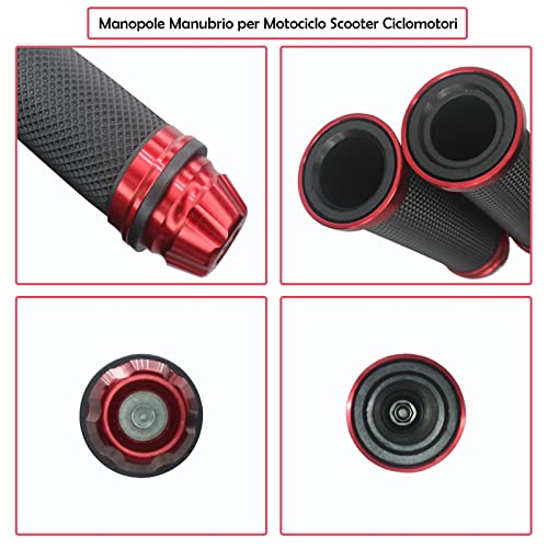 Manopole moto vale anche per manopole scooter 1 paio Lega di alluminio CNC durevole Manubrio LQHLYN Maniglia dell'acceleratore 24mm 0.95inch Manopole gomma antiscivolo Comodo da tenere (rosso)