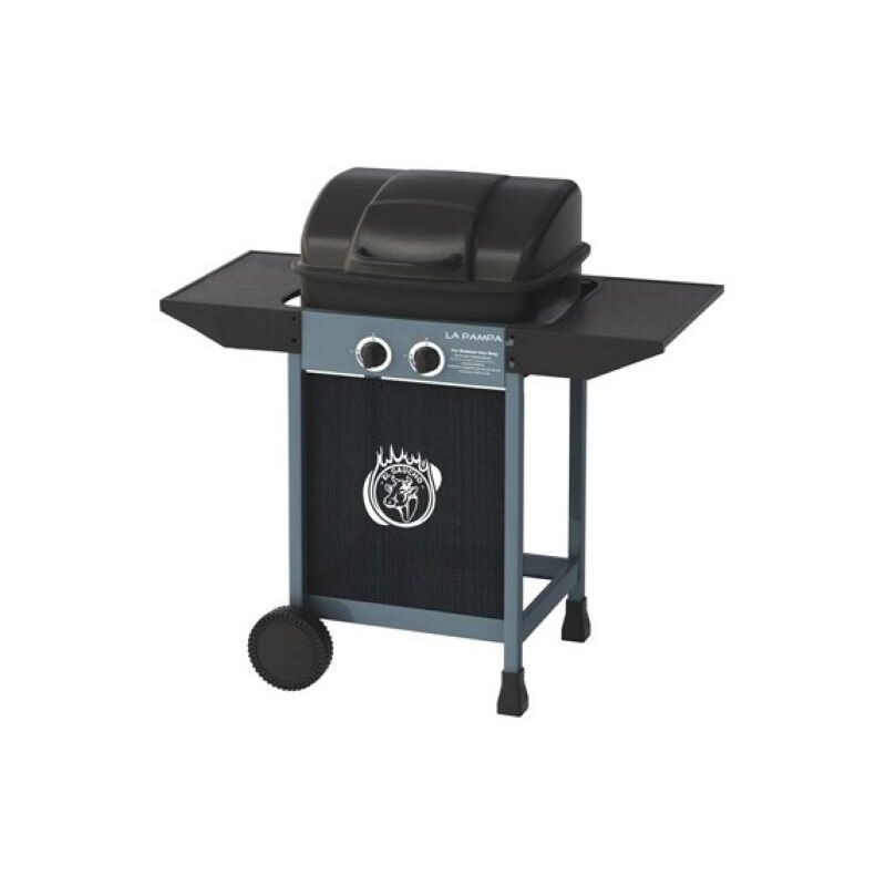 Modello a gas a pietra lavica (1,5 Kg. pietra lavica in dotazione) area di cottura 45x34 cm., griglia in acciaio, piani appoggio laterali, 2 bruciatori accensione piezo, coperchio per cottura a forno, 2 ruote. Dimensione 97x45xH99 cm.