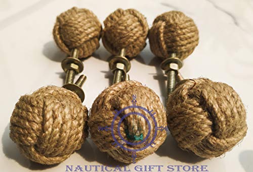 Manopole per porte in corda di iuta, con nodo a corda, per cassetti, armadi, armadietti e armadi, decorazione per accessori nautici, 35 mm, set di 6