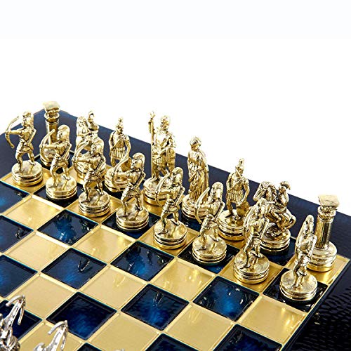 Manopoulos Archers Small Chess Set - Brass&Nickel - Blue Chess Board