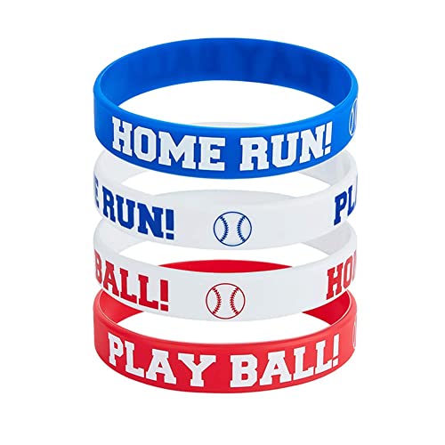 DESIGN BASEBALL: I braccialetti sono disegnati con tema baseball, stampati con motivi baseball e la parola PLAY BALL! FUORI CAMPO! 4 design diversi, ogni design 6 pezzi, sufficienti per l'uso. Colorati principalmente in rosso, blu e Bianca, ottimi per motivare le persone a giocare a baseball.
