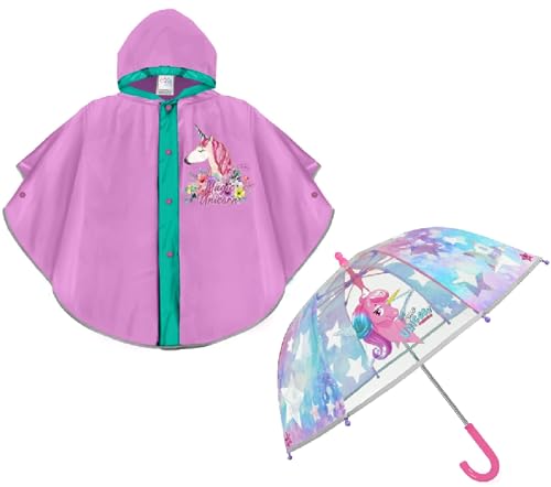 Prl Mantellina Pioggia e Ombrello Trasparente UNICORNO Poncho Antipioggia 3-6 anni Impermeabile Bambina Bimba Mantella