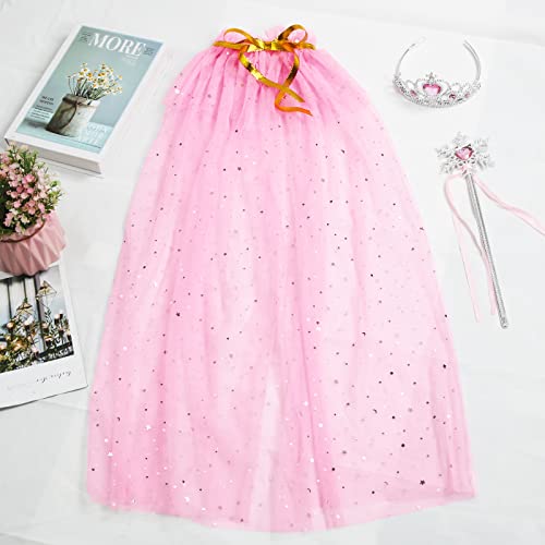 Mantello Principessa Bambina, Mantello Principessa Fata Rosa, Accessori Principessa Corona Bacchetta, Cape Principessa per Costume Travestimento Carnevale Compleanno Halloween Feste Ragazza