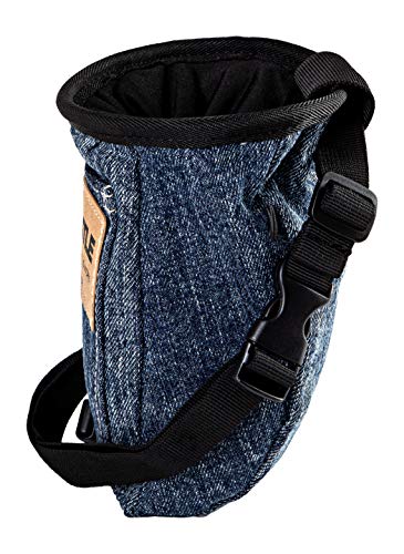 Borsa per chalkbag in jeans scuro. Robusto tessuto jeans in 100% cotone come materiale esterno