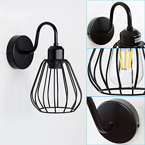 MantoLite Gabbia Illuminazioni per Pareti, Industriale Applique Lampada E27 Nero Illuminazione Bagno Luci Specchio Faretti da Muro Interni Applique Da Parete Soggiorno(Lampadina Non Inclusa)