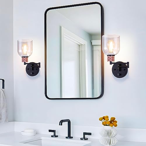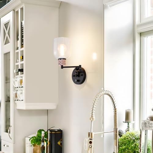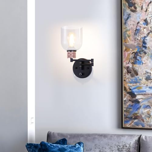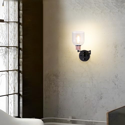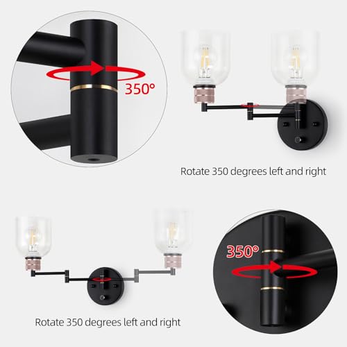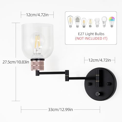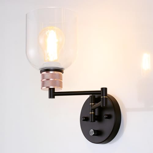 MantoLite Lampada Da Parete Dimmerabile Con Interruttore, Braccio Orientabile Regolabile Applique Da Letto Nero Con Paralume In Trasparente, Applique Per Soggiorno E Camera Da Letto (No Lampadine)