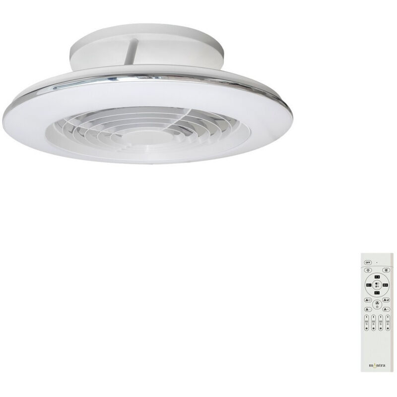 Plafoniera led con ventola Mantra Alisio mini 70+30W 2700-5000K bianco - 7493 Plafoniera led con ventola -Potenza led: 70 W -Potenza motore: 30 W -Temperatura colore. 2700-5000 K -Flusso luminoso: 4900 lm -Colore: bianco -Grado di protezione: IP20 -Diametro: 52.5 cm -Altezza: 16.5 cm Classe di efficienza energetica: Conforme Tipo: Plafoniera Tecnologia di illuminazione: LED Colore: Bianco Caratteristiche: Telecomando Lumen: 2000 lm o più Consumo energetico: 100-149 W