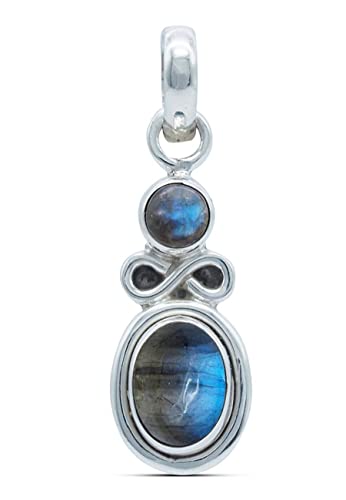 Mantraroma Collana argento 925 con pietre preziose labradorite pietra verde Catena in argento sterling da donna in vero argento (MAH-075-05)