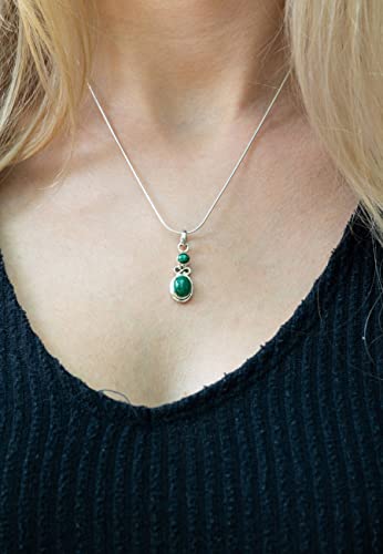 Mantraroma Collana argento 925 con pietre preziose malachite pietra verde Catena in argento sterling da donna in vero argento (AK3-075-10-55)