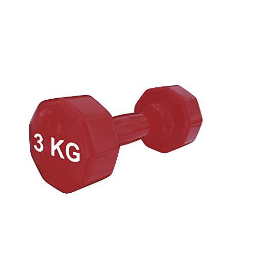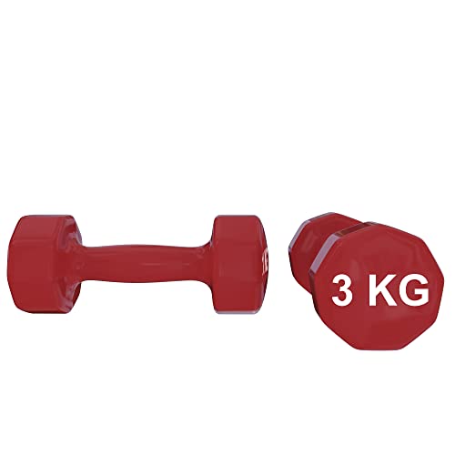 Manubri Pesi Vinile 3 kg - Dumbbells Ideali per Esercizi in casa e Palestra - Impugnatura Antiscivolo - Colore Rosso