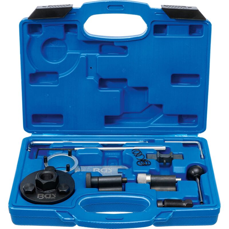 Adatto per i seguenti modelli: Audi A1, A3 (8P), A4 (B8), A5A6 (C6, C7), TT (8J), Q3, Q5 Skoda Fabia II, Roomster, Praktik, Oktavia II, Suberb II, Yeti Seat Ibiza (6J), Leon III, Exeo, Altea, Alhambra II VW Golf V, VI e Plus, Eos, Polo VJetta V e VI, Scirocco III, Beetle II, Caddy II, Passat B6, B7 und CC, Touran, Sharan II, T5, Amarok Codici motore CAYB, CAYC, CBAB, CBBB, CBAA, CFFB, CAGA, CAHA, CAGB, CAHB, CAGC, FCA, CAAA, CAAB, CAAC, CCHA, CAVA, CBAB, CBDA, CBDD, CBAC, CBDA, CBDC, ecc. Adatto anche per motori a getto di pompa passati Contiene importanti utensili per il controllo e la regolazione della fasatura dopo la sostituzione della cinghia dentata Oggetto della fornitura: Bloccaggio pompe di iniezione, Da usare come OEM T20102, U40074, 3359 Bloccaggio albero a gomiti, Da usare come OEM T10050, T10100 Esagono interno testa sferica 6 mm, Da usare come OEM T10264 Perno di bloccaggio rullo tenditore 2.5mm, Da usare come OEM T10265 Perno di bloccaggio rullo tenditore 3.9mm, Da