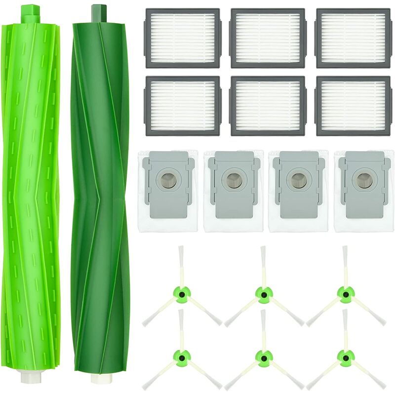 Perfettamente compatibile - Parti di ricambio compatibili con l'aspirapolvere iRobot i7 i7+ i3 i3+ i4 i4+ i6 i6+ i8 i8+ j7 j7+/Plus E5 E6 E7, funzionano perfettamente e sono facili da installare. 【Pacchetto prezioso】 Include 1 confezione di spazzole in gomma multi-superficie, 6 confezioni di filtri HEPA, 6 confezioni di spazzole laterali, 4 confezioni di sacchetti di base puliti, 1 confezione di spazzole pulite, 1 confezione di cacciaviti. 【Estrattore di detriti in gomma morbida senza grovigli】 Per utilizzare la spazzola in gomma AEROFORICE, design esclusivo del rullo, gomma super morbida resistente all'usura, grana speciale, risolve completamente il problema dell'avvolgimento, maggiore tasso di raccolta dei rifiuti, design del battistrada a zigzag sulla spazzola a rullo, decompone fortemente i detriti, spezzare i capelli, anche il 99% dei capelli verrà rimosso. 【Prestazioni elevate】 La spazzola laterale premium penetra in profondità negli angoli e nei bordi per rimuovere più sporco